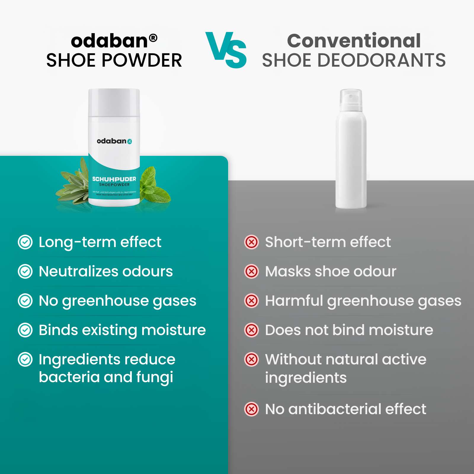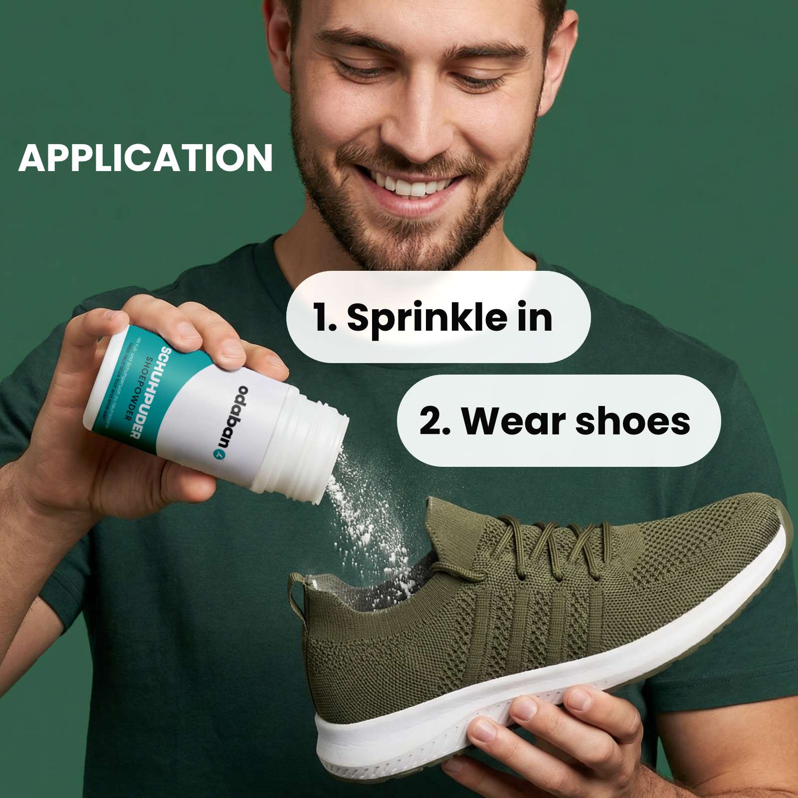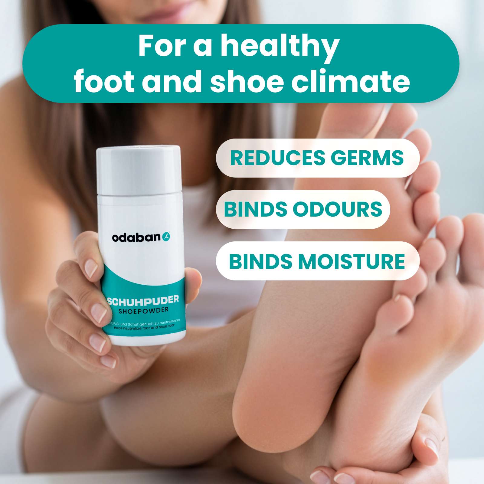 With its germ-reducing and gently revitalising ingredients, odaban® foot- and shoepowder is therefore also the ideal care solution for both feet and shoes.
