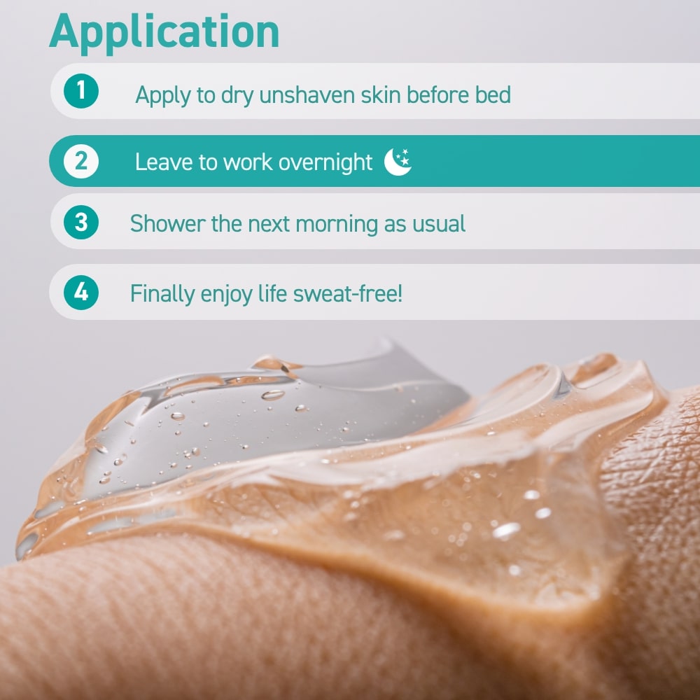 Sweating is individual – with odaban Gel you can easily determine the amount you personally need to stop your sweat flow. In most cases, a small amount is sufficient.